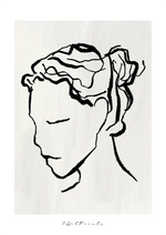 Ein Gemälde einer Frau mit lockigem Haar, in Form von Linien.