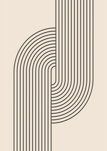 Dieses Gemälde ist ein minimalistisches Kunstwerk mit vertikalen Linien, die in einer abgerundeten rechten Ecke auf einem beigen Hintergrund gebogen sind.