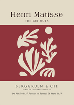 Dieses auffällige Gemälde von Henri Matisse, zu sehen bei Berggruen & Cie in Paris, zeigt weiße, abstrakte Blattformen, die ausgeschnitten zu sein scheinen, vor einem lebendigen roten Hintergrund. Ein faszinierender und farbenfroher Ausdruck seiner Kunst.
