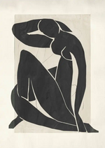 Ein Gemälde einer Frau, die in Schwarz-Weiß in einer hockenden Position dargestellt ist.