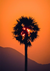 Ein Gemälde einer Palme mit einem Teil der Sonne zwischen den Blättern.