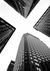 Schwarz-weißes Gemälde mit unten 4 großen Gebäuden.