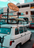 Ein Gemälde eines Autos, das eine Surfschule anbietet.