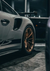 Dieses Gemälde zeigt eine Nahaufnahme der seitlichen Rückseite eines Porsche GT3 RS. Der Fokus liegt auf dem wunderschönen bronzenen Rad und dem aerodynamischen Design, nachts geparkt in einer schlecht beleuchteten Garage.
