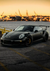 Dieses Gemälde zeigt einen matt schwarzen Porsche GT3 RS, der in einem Hafen bei Sonnenuntergang geparkt ist, mit Hafenkränen, die im sanft orange beleuchteten Hintergrund sichtbar sind. Das Fahrzeug ist mit auffälligen gelben Bremssätteln und aerodynamischen Designelementen ausgestattet.