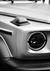 Dieses Gemälde zeigt eine Nahaufnahme eines Scheinwerfers und Blinkleuchte eines Mercedes G Wagon AMG in Schwarz-Weiß, was das schlanke Design der Fahrzeugfront betont.