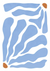 Ein abstraktes Gemälde mit verschiedenen blauen Formen und Linien auf weißem Hintergrund mit kleinen orangen Akzenten. Die Komposition vermittelt den Eindruck von fließender, organischer Bewegung.