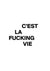 Ein Gemälde mit schwarzem Text auf weißem Hintergrund zeigt "c'est la fucking vie" in fettgedruckten Großbuchstaben.