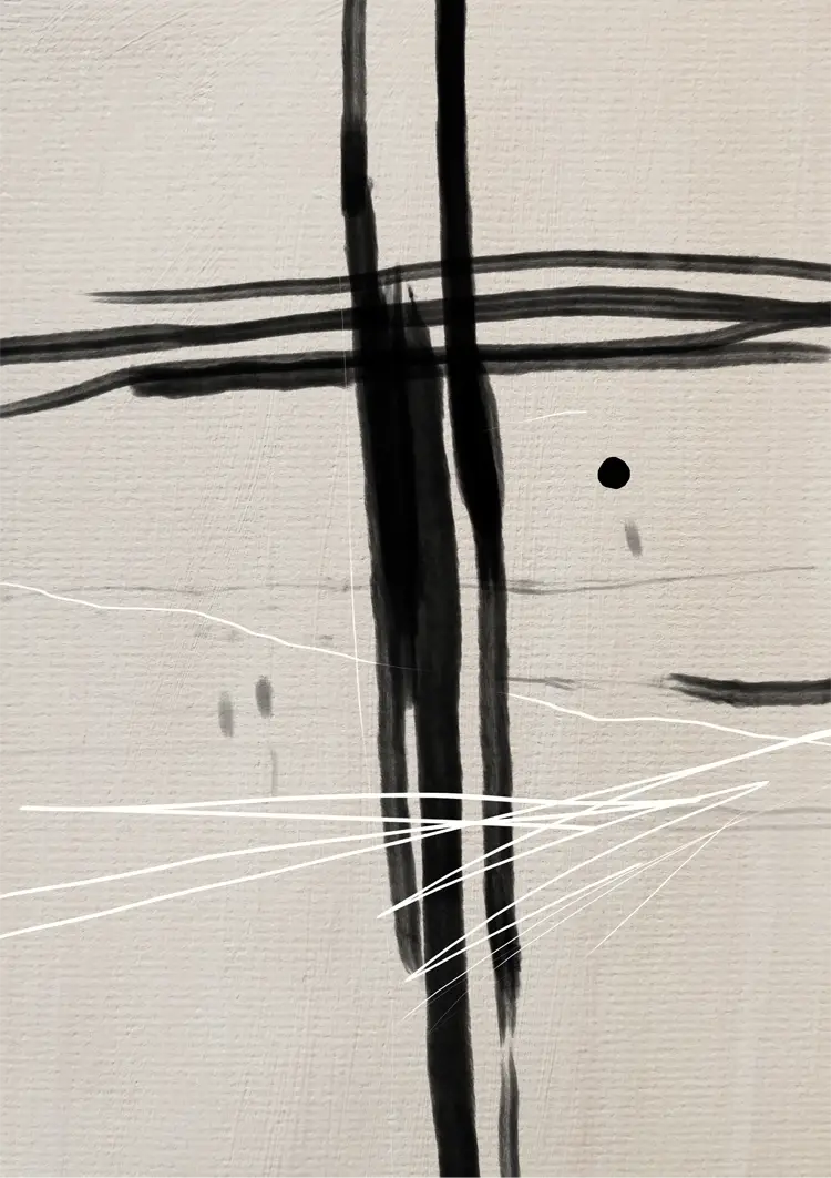 Ein schwarz-weißes Gemälde mit einem schwarzen Kreuz darauf abgebildet.