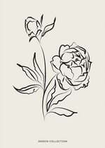 Ein Gemälde einer Rose, in Schwarz auf einem beigen Hintergrund gezeichnet.