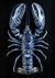Schwarzgrund mit einem Gemälde eines hellblauen Hummers mit detaillierten weißen Flecken. Die großen Scheren und der segmentierte Körper zeigen wunderschöne Muster.