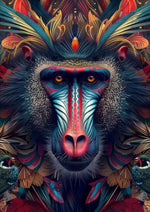 Dieses Gemälde zeigt ein lebendiges Mandrill, dessen Gesicht mit auffälligen blauen und roten Tönen verziert ist, umgeben von komplizierten Mustern. Das lebendige Design und die feinen Details machen es zu einem bezaubernden Kunstwerk, das sich für jede Sammlung von Naturliebhabern eignet.