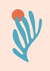 Dieses abstrakte Gemälde zeigt ein blaues Korallenstück mit einem roten Kreis auf einem hellrosa Hintergrund, das an Meeresflora erinnert. Es hat eine wellenförmige Gestalt mit fünf Zweigen.