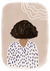 Dieses abstrakte Gemälde zeigt ein Poster einer Person von hinten. Sie hat schwarzes lockiges Haar und trägt ein weißes Hemd mit einem blauen Muster. Im Hintergrund befindet sich ein dekoratives Linienmuster.