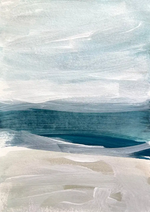 Et maleri der bruger maling, og hvis man ser godt efter, kan man se en udsigt over en strand.