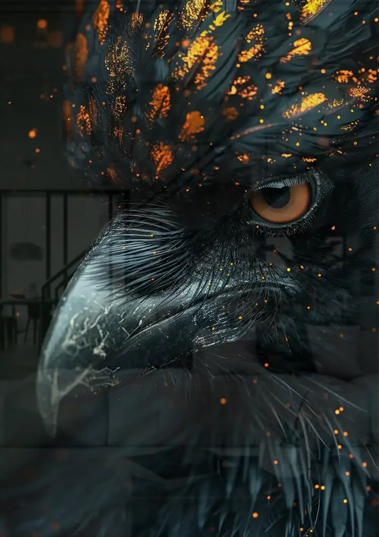 Maleri af oplyst sort fugl