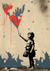 Dette maleri viser et barn med en farverig drage i hånden.