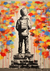 Dette maleri forestiller et barn med en rygsæk, der står på en trappe og kigger på en væg, der er oversprøjtet med dryppende maling i et væld af farver.