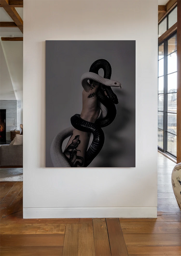 Bland sort-hvide elementer med farverige dekorationer for at skabe kontrast og balance. Dette skaber et dynamisk og afbalanceret interiør. Enkelheden i sort-hvid kunst gør det nemt at kombinere med forskellige farver og stilarter, hvilket giver dig mulighed for at skabe kreative og visuelt tiltalende kombinationer.