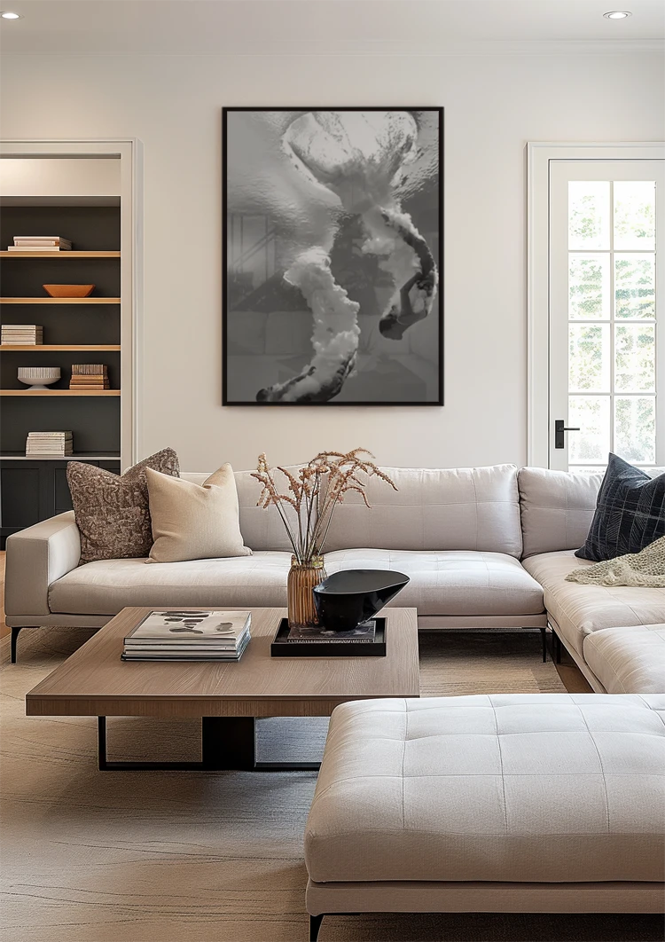 Valget af det rigtige materiale afhænger helt af det look, du ønsker. Går du efter et varmt og klassisk look? Så er lærred perfekt: dets matte, tekstillignende overflade skaber en tidløs atmosfære. For en moderne og luksuriøs finish skal du vælge akrylglas , hvor farverne funkler, og detaljerne kommer til live takket være dets blanke finish. Dibond er derimod det bedste valg, hvis du foretrækker en elegant, minimalistisk stil; det er robust, diskret og har en mat finish. Ønsker du et elegant og klassisk kunstværk? Vores indrammede muligheder giver en stilfuld finish, der passer perfekt ind i ethvert interiør.