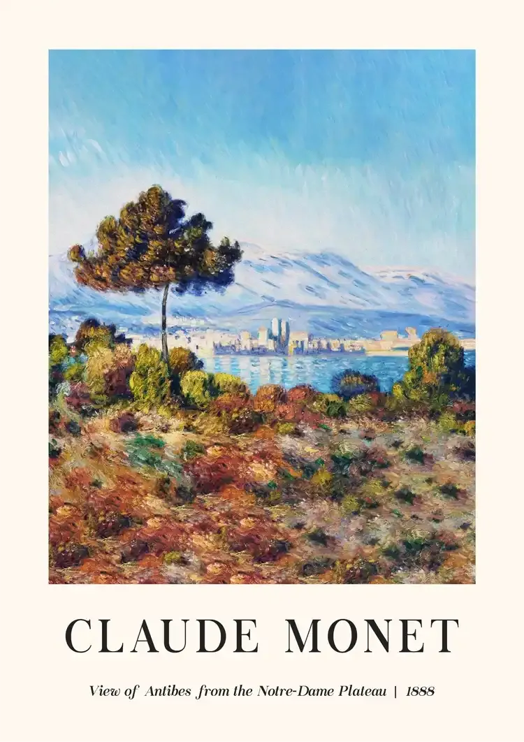 Maleri af Claude Monet med udsigt over Antibes fra Notre-Dame-plateauet