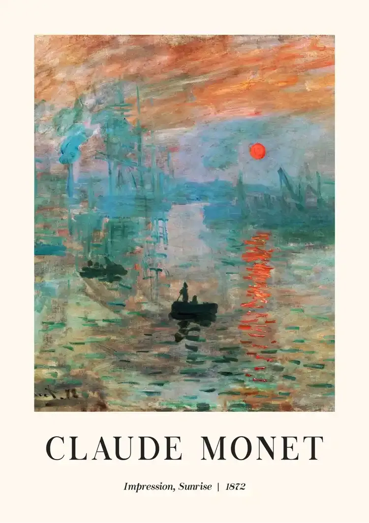 Dette smukke maleri af Claude Monet, "Impression, Solopgang", indfanger den fortryllende atmosfære af en blød solopgang over en travl havn, hvor både danser på det rolige vand, og den orange sol reflekterer sin glød. Med løse penselstrøg og mættede farver bringes scenen til live på en mesterlig, impressionistisk måde.