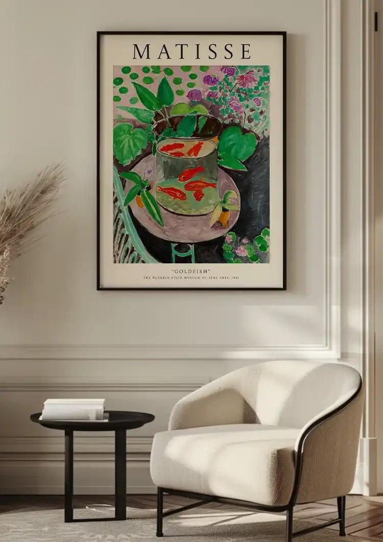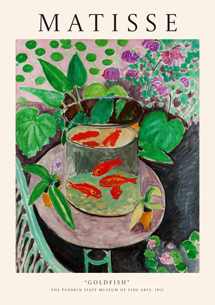 Dette smukke Matisse-maleri, 'Guldfisk' i Pushkin Statsmuseum for Kunst, skildrer livlige guldfisk i et fortryllende og farverigt undervandslandskab.