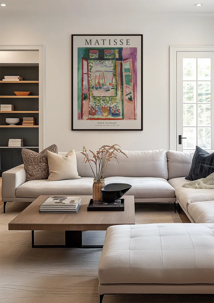 Valget af det rigtige materiale afhænger helt af det look, du ønsker. Går du efter et varmt og klassisk look? Så er lærred perfekt: dets matte, tekstillignende overflade skaber en tidløs atmosfære. For en moderne og luksuriøs finish skal du vælge akrylglas , hvor farverne funkler, og detaljerne kommer til live takket være dets blanke finish. Dibond er derimod det bedste valg, hvis du foretrækker en elegant, minimalistisk stil; det er robust, diskret og har en mat finish. Ønsker du et elegant og klassisk kunstværk? Vores indrammede muligheder giver en stilfuld finish, der passer perfekt ind i ethvert interiør.