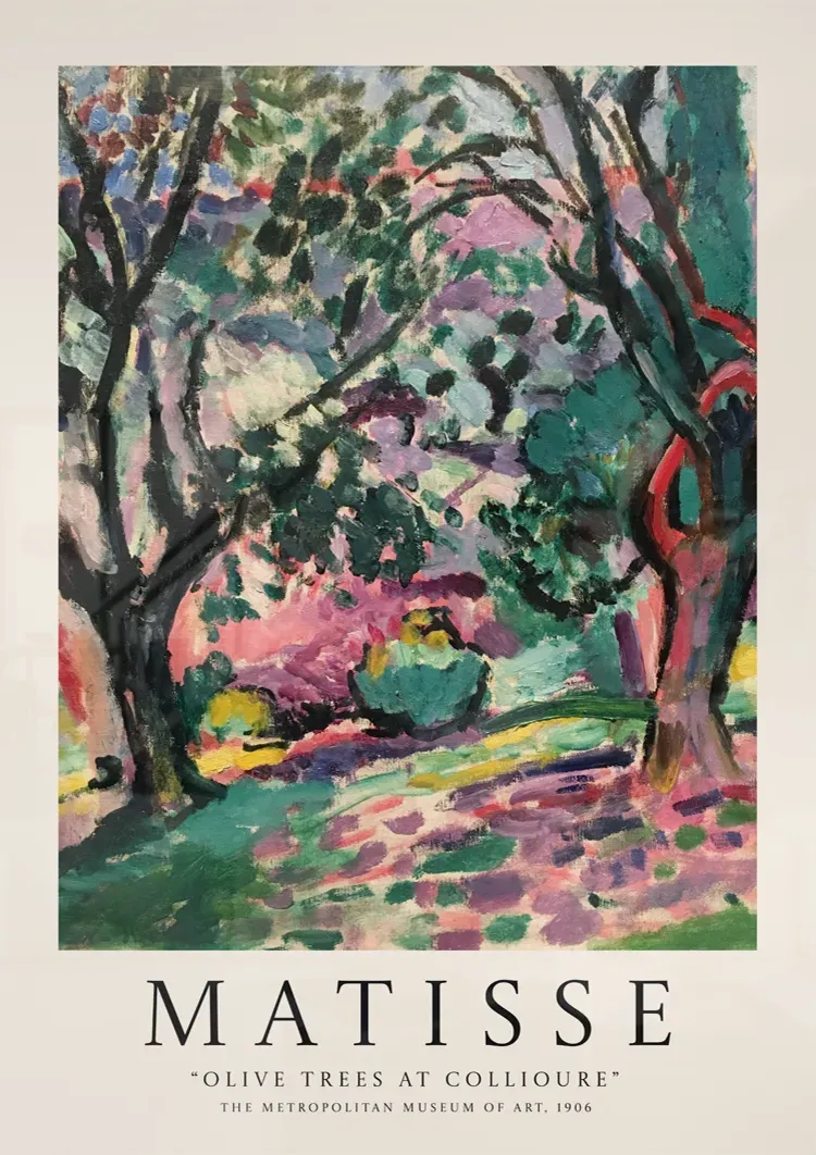 Dette Matisse-maleri, "Oliventræer i Collioure", på Metropolitan Museum of Art fremviser de livlige farver og penselstrøg, der er karakteristiske for hans værker.