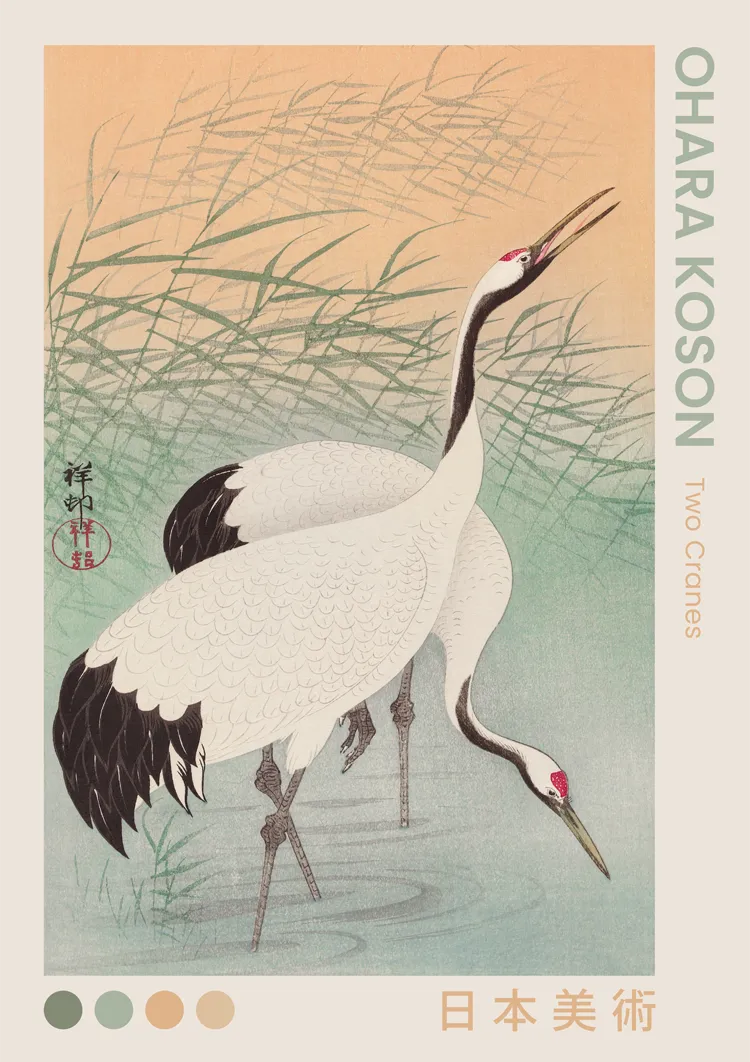 Hvorfor vælge O. Koson Maleri af to traner på lærred