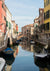 Dette maleri forestiller en fredfyldt kanal i Venedig, flankeret af farverige bygninger og små brostier.