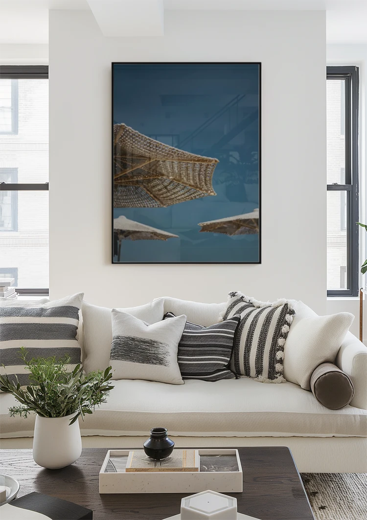 - Kunst over sofaen? Vælg en bredde på mindst 100 cm. Det kan være ét stort værk, eller et kombination af to eller tre mindre værker ved siden af hinanden.