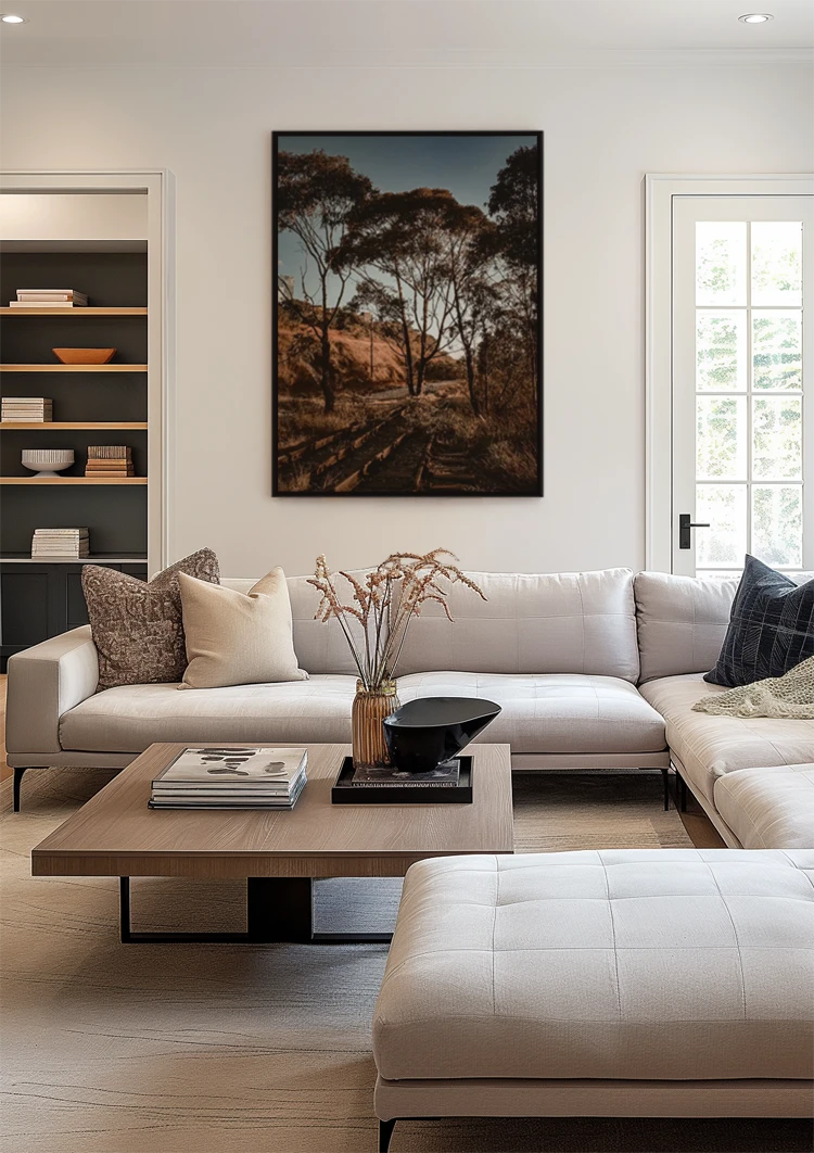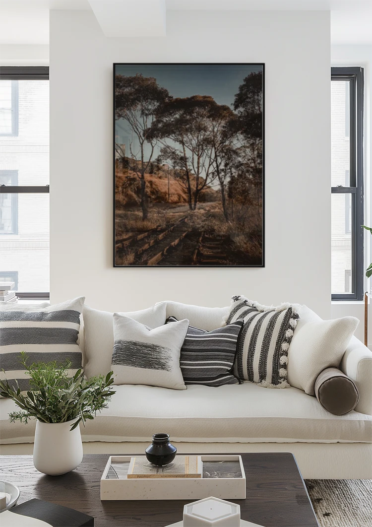 • Kunst over sofaen? Vælg en bredde på mindst 100 cm. Det kan være ét stort værk, eller et kombination af to eller tre mindre værker ved siden af hinanden.