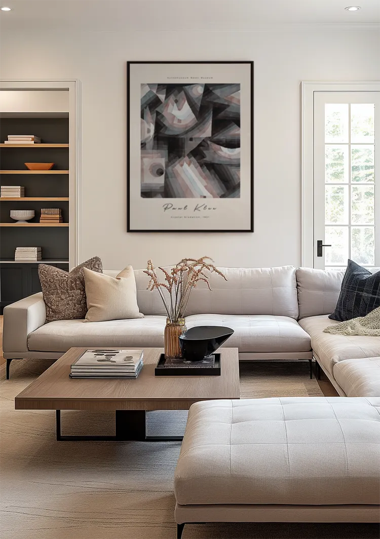 Dette maleri indfanger essensen af moderne minimalisme med sin abstrakte plakat, hvor dæmpede farver og geometriske former kombineres for et tidløst look. Perfekt til et stilfuldt og moderne interiør.