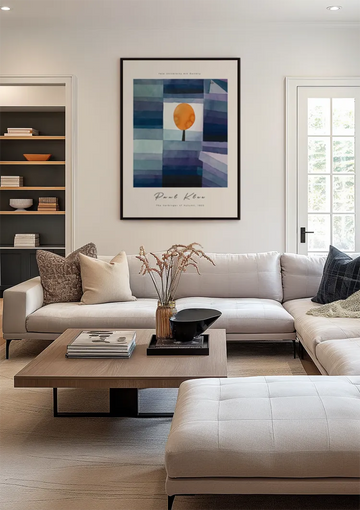 - Kunst over sofaen? Vælg en bredde på mindst 100 cm. Det kan være ét stort værk, eller et kombination af to eller tre mindre værker ved siden af hinanden.