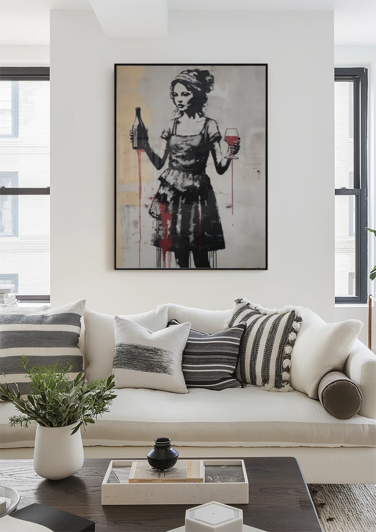 Hvorfor vælge Maleri af kvinde i kjole med dryppende vin på lærred