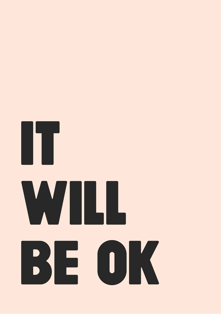 Dette tidløse maleri med de berigende ord "IT WILL BE OK" med fede sorte bogstaver på en blød, lyserød baggrund tilbyder et beroligende budskab og en beroligende atmosfære. En beroligende tilføjelse til ethvert rum.
