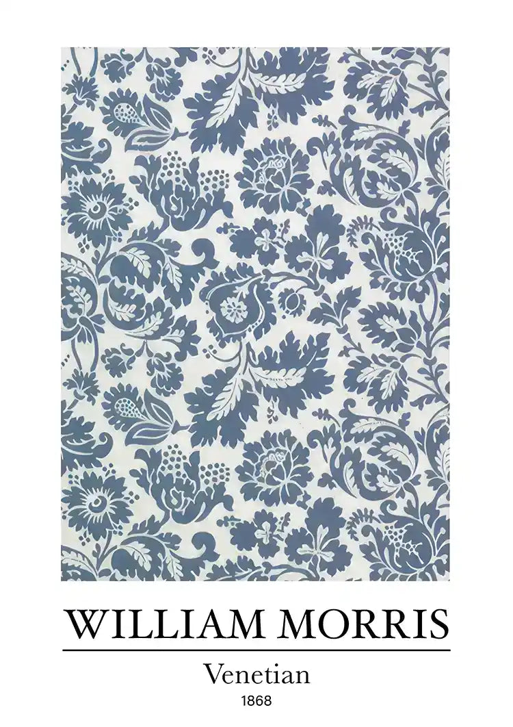 Dette maleri med titlen 'Venetian' af W. Morris har et levende blåt og hvidt design med elegante venetianske blomstermønstre fra 1868.