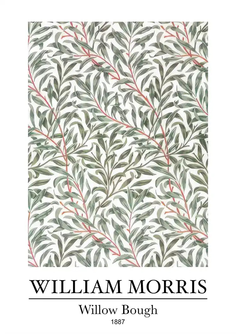 Dette maleri fra 1887 med titlen 'Willow Bough' af William Morris har et smukt design af grønne og grå pilegrene, suppleret af diskrete røde accenter.