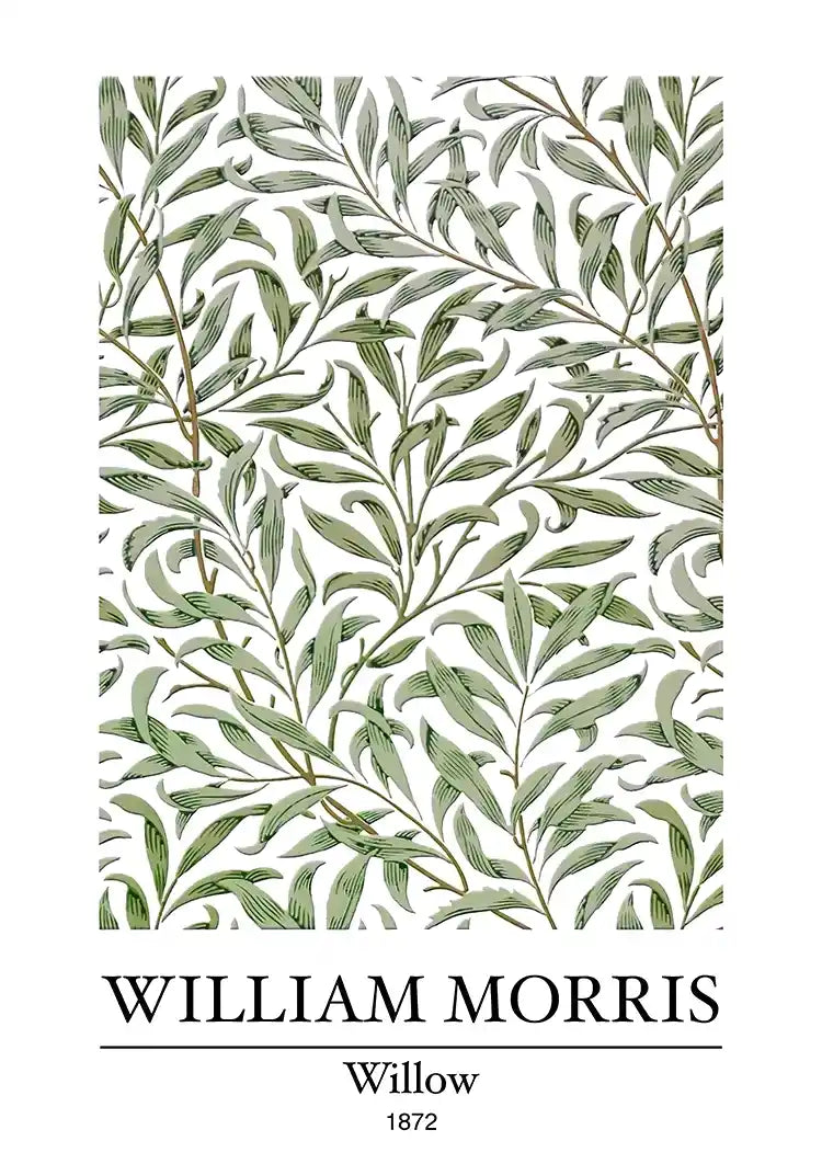 Dette maleri med titlen "Willow" af W. Morris har et smukt grønt og hvidt mønster med elegante pilegrene og -blade. Det er en charmerende og raffineret tilføjelse til ethvert interiør.
