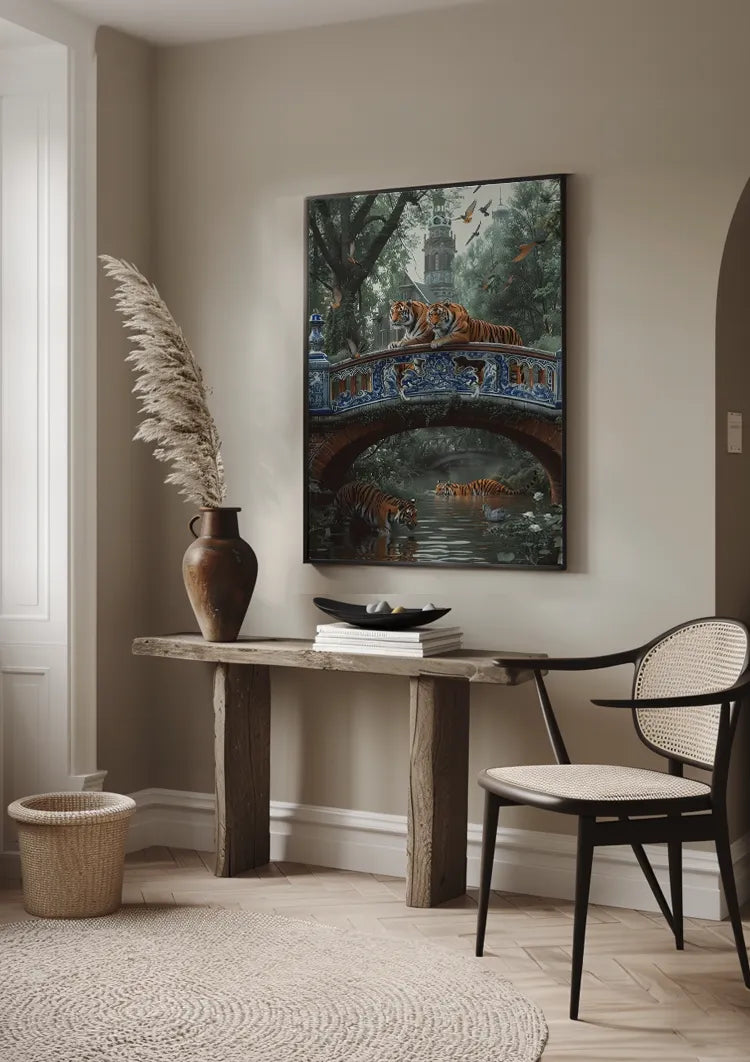 Hvorfor vælge Maleri af tigre på en porcelænsbro på lærred
