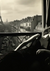 Et sort-hvidt maleri af en kvinde i halv indrammet ramme med udsigt over en by.