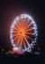 Et maleri af et pariserhjul i mørke, oplyst i flere farver.