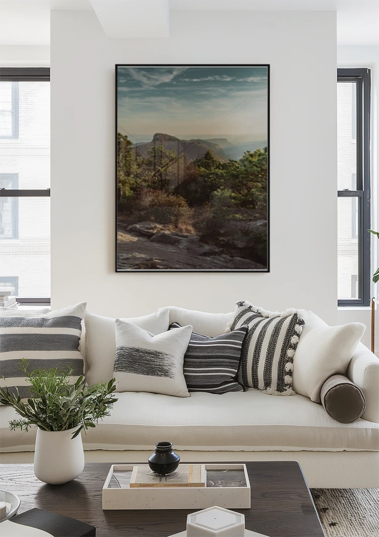 Valget af det rigtige materiale afhænger helt af det look, du ønsker. Går du efter et varmt og klassisk look? Så er lærred perfekt: dets matte, tekstillignende overflade skaber en tidløs atmosfære. For en moderne og luksuriøs finish skal du vælge akrylglas , hvor farverne funkler, og detaljerne kommer til live takket være dets blanke finish. Dibond er derimod det bedste valg, hvis du foretrækker en elegant, minimalistisk stil; det er robust, diskret og har en mat finish. Ønsker du et elegant og klassisk kunstværk? Vores indrammede muligheder giver en stilfuld finish, der passer perfekt ind i ethvert interiør.