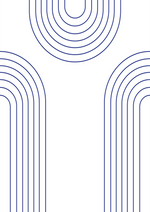 Et grafisk maleri med blå linjer, der danner to symmetriske buer, forbundet af koncentriske halvcirkler øverst. Layoutet er minimalistisk og bruger en hvid baggrund med tynde blå linjer.