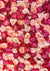 Maleriet viser en række farverige blomster, tæt pakket sammen, overvejende med lyserøde, hvide og lilla roser, ispedd nogle gule og blå blomster.