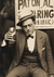 Et sort-hvidt maleri af en mand med en drink, med tekst på væggen bagved.