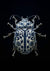 Dette maleri viser en detaljeret bille med et ydre skelet dekoreret med blå og hvide blomstermønstre, inspireret af porcelænskunst, komplet med fine ben og antenner.