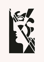 Et sort-hvidt maleri med sorte områder, der danner et ansigt.