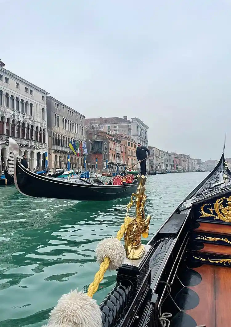 Dette maleri blev lavet af en gondol, og man ser en anden gondol i Canal Grande i Venedig.
